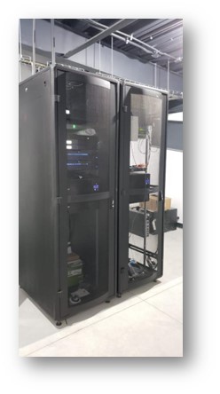 Solución e infraestructura para centro de datos, la cual consta de 2 gabinetes y 1 rack de dos postes para acomodamiento de fibras,entubado, canalización de 198 puntos de red certificados. Suministro e instalación de transferencias manuales y tableros regulados.