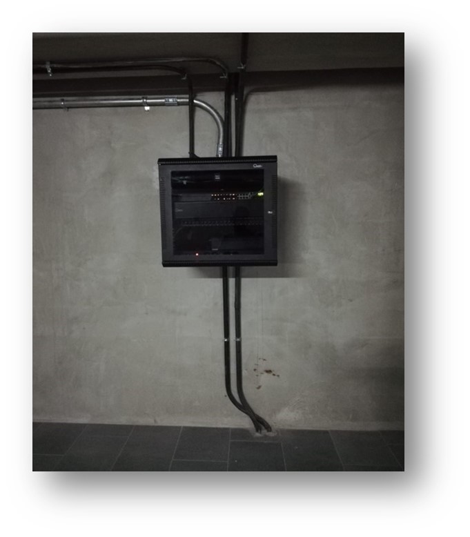 Instalación de 192 puntos de red implementados para el funcionamiento de CCTV, ACCESS POINT, PANTALLAS PUBLICITARIAS Y CONTROL DE CONTADORES ELECTRICOS. Los cuales fueron distribuidos en los 12 niveles y 5 sótanos con los que cuenta el edificio.