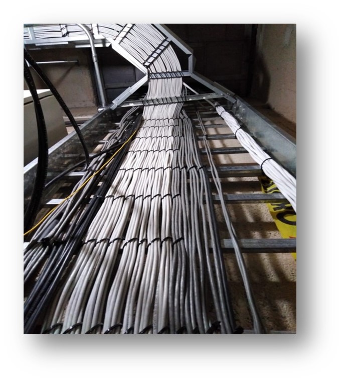 Entubado, canaleteado, cableado estructurado para 120 puntos de red para puestos de trabajo.